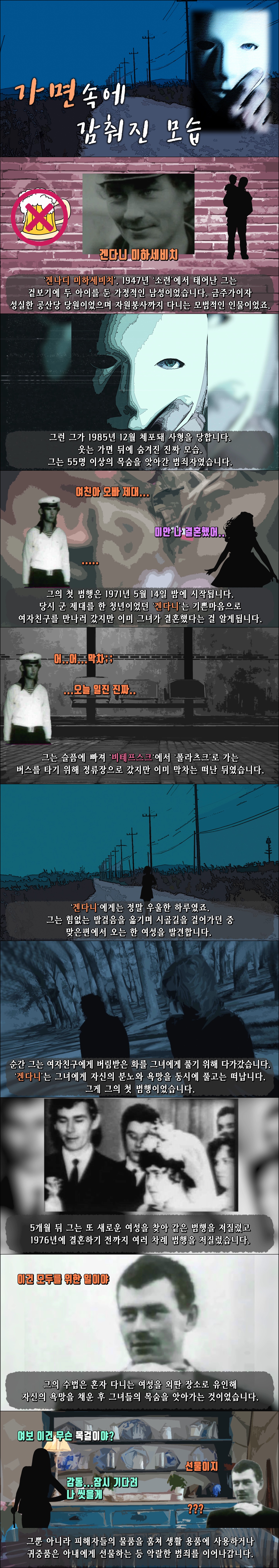 ‘겐나디 미하세비치’, 1947년 ‘소련’에서 태어난 그는 겉보기에 두 아이를 둔 가정적인 남성이었습니다. 금주가이자 성실한 공산당 당원이었으며 자원봉사까지 다니는 모범적인 인물이었죠.